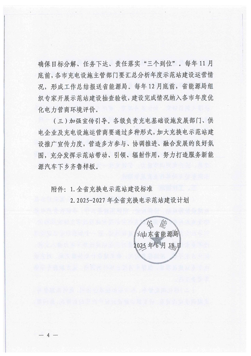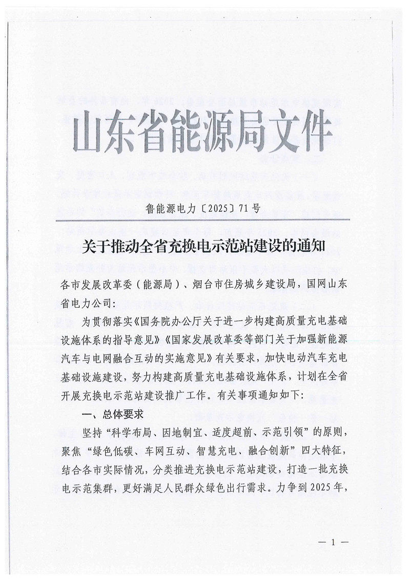 感谢贵局多年来对县发改局工作的关心和支持!2025年6月18日,山东省能源局印发了《关于推动全省充换电示范站建设的通知》,对全省充换电示范站建设工作进行安排部署。9月24日,国家发展改革委等部门研究制定了《电动汽车充电设施服务能力“三年倍增”行动方案(2025-2027年)》,加大力度完善电动汽车充电设施服务网络,提升消费品质。近期,市能源局下达我县2025-2027年建设省充换电示范站任务目标为:完成2个中型和2个小型示范站。根据国家省市有关部署和县领导指示要求,我县规划了正大电力便民示范站、幸福公馆示范站、“三馆一官’示范站等省级示范站,并正在加紧施工中。为确保我县充换电示范站建设顺利推进,请贵局根据部门职能,协同配合做好示范站建设工作,为省级充换电示范站顺利建设提供有力保障。